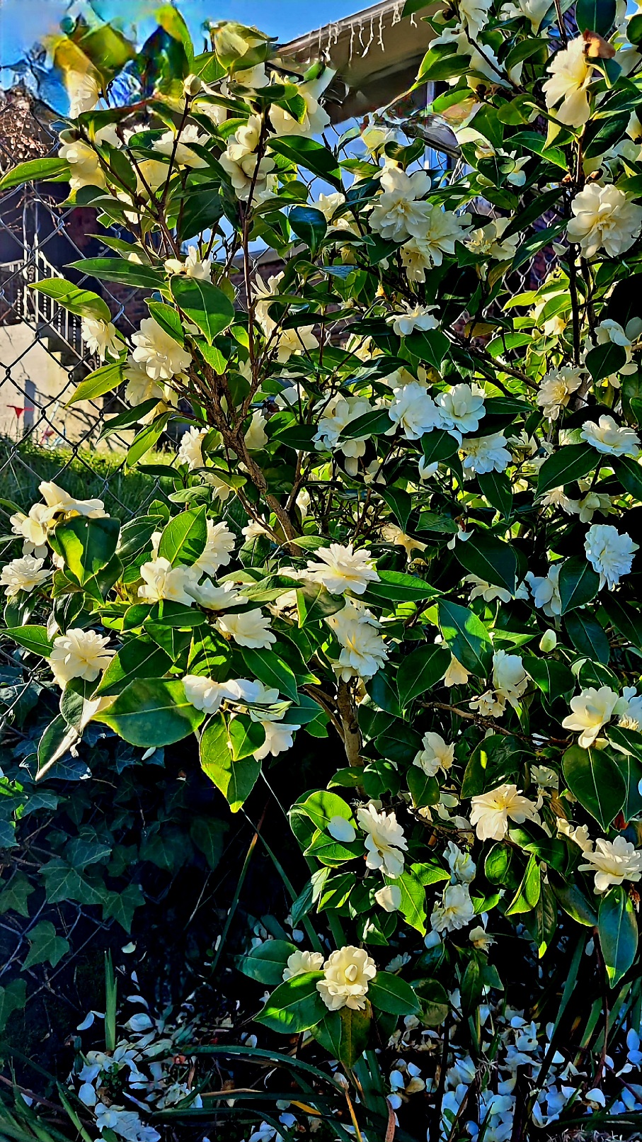 The Camellia ‘Buttermint’ is going full tilt.