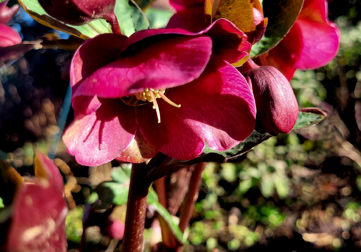 This very pink double Hellebore is sporting some rotting flowers. It’s also got some bugs as you can see here on the upper right. It’s not my favorite so I’m not too concerned.